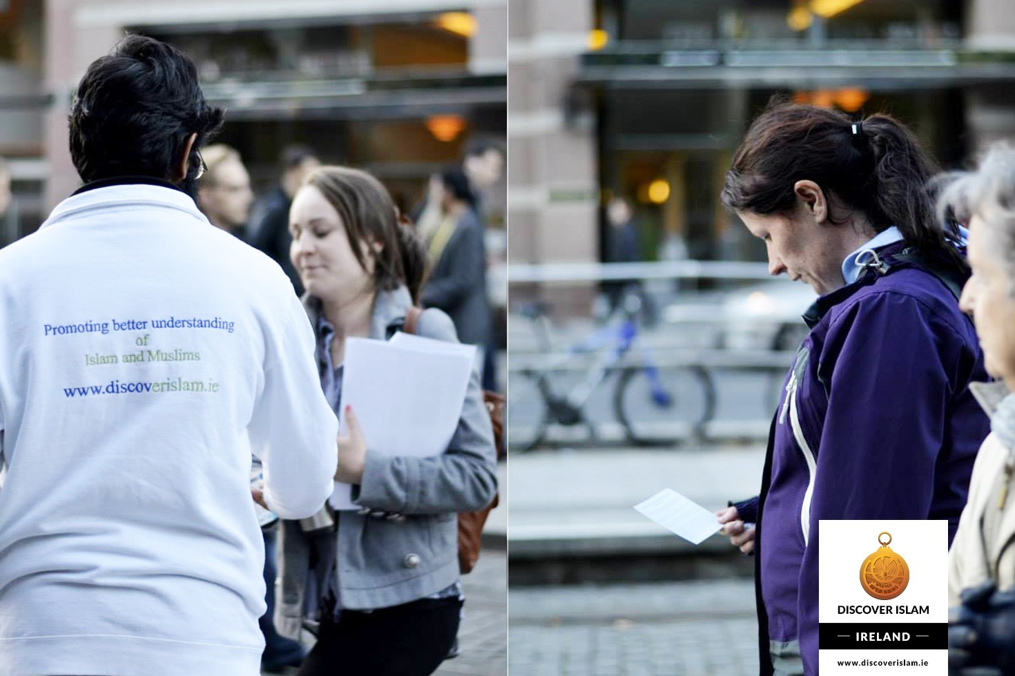 Islamic Information Booths are held on Saturdays in Dublin (off Grafton Street), Cork (outside the English Market on Princes Street) and Galway (Mainguard Street).